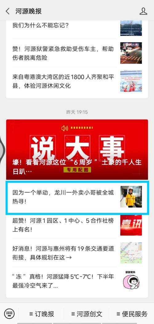 河源头条上的新闻视频真是让人目不暇接。无论是神秘失踪事件、爱心接力,还是环保行动、美食诱惑,都展现了这座城市的活力与魅力。让我们一起关注河源头条,共同见证这座城市的成长吧!